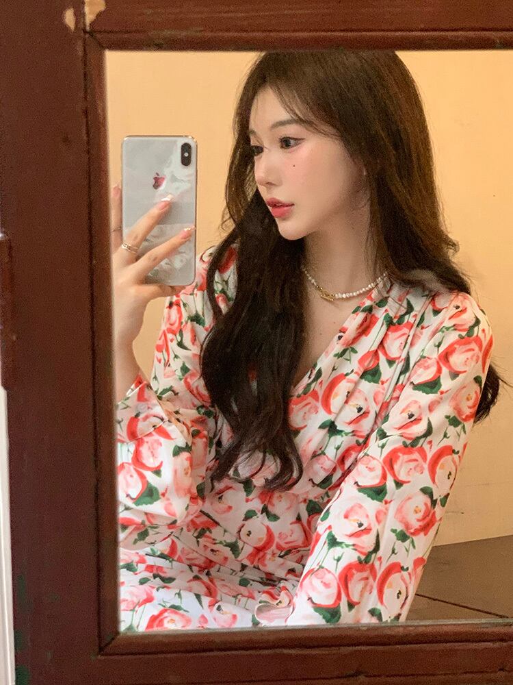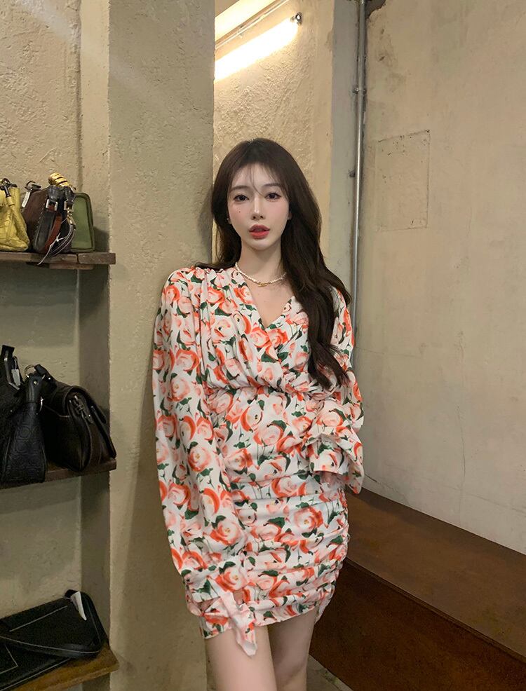 フローラルドレス サマースタンダードウェスト薄手スカート ロング レトロ 夏物 花柄 フラワークラフター70656499456