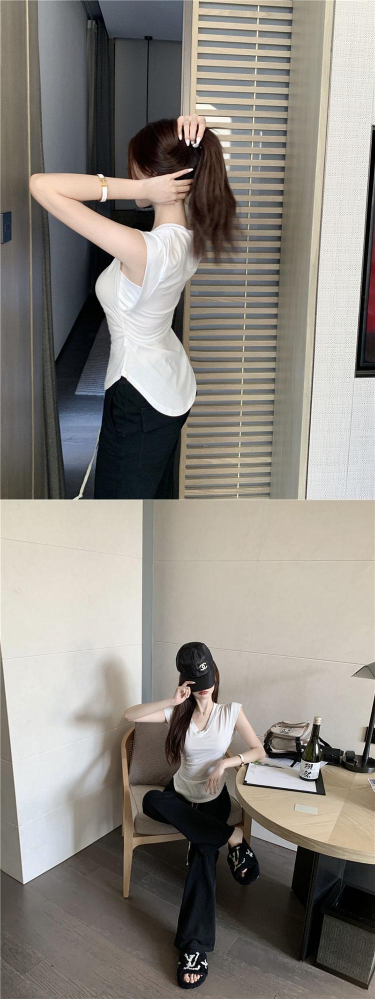 ホワイトTシャツ シャツ サマー薄手レッドVネックスリム 夏物 フラワークラフター67628452822