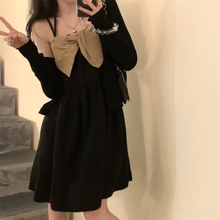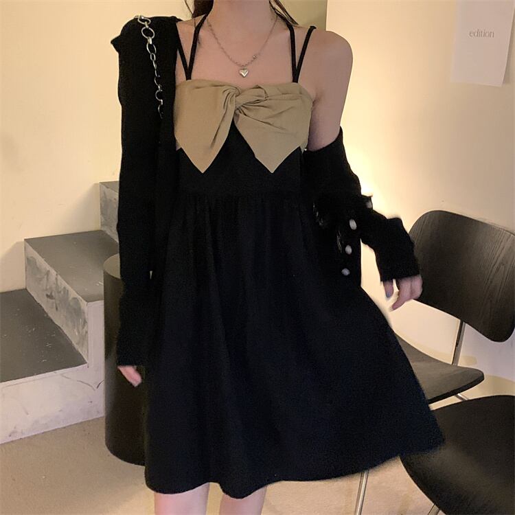 ブラックホルタードレス サマーウェストスリムショートスカート リボン 夏物 フラワークラフター66780809662