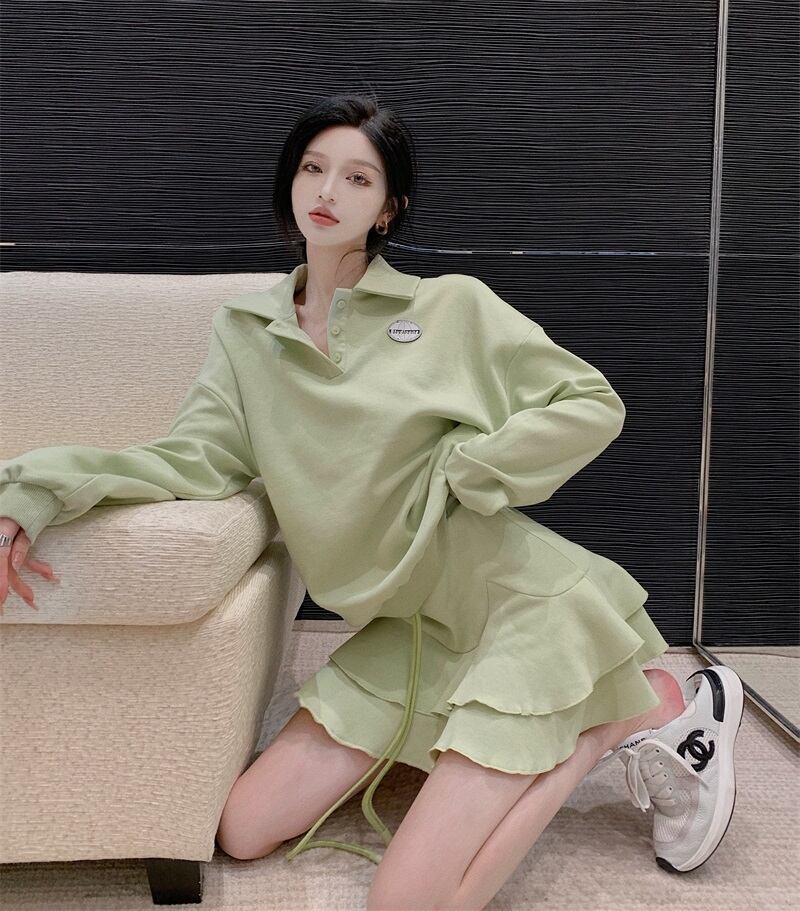 グリーンカラーセーター スプリングオータム薄手ルーズトップス ロング 春物 秋物 フラワークラフター31890536054