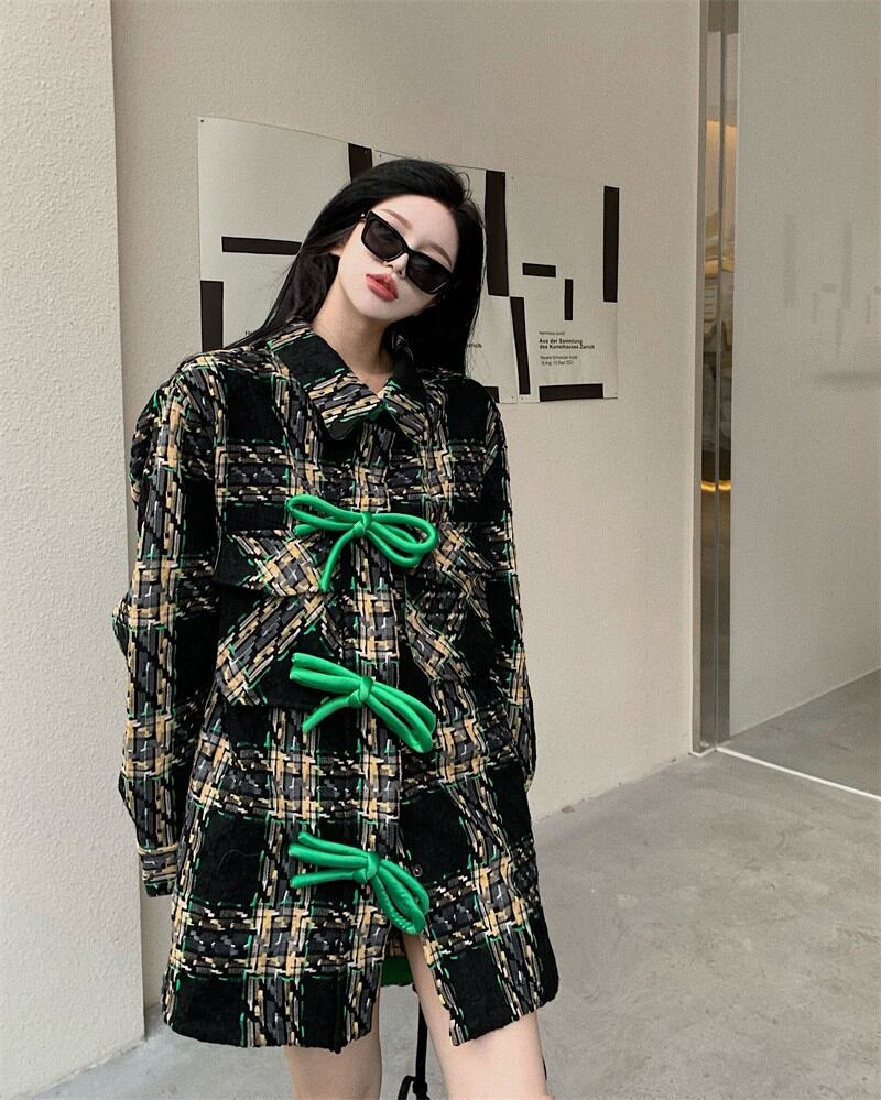 格子柄ジャケット スプリングオータムルーズ ロング 春物 秋物 フラワークラフター68946722904