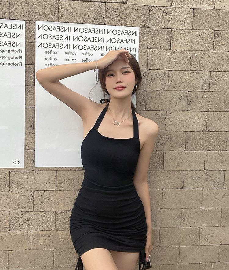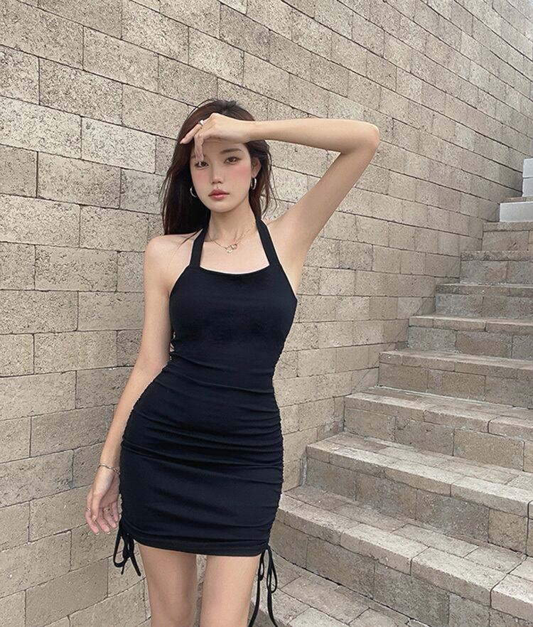 ブラックホルタードレス サマーウェストギャザーショートスカート 夏物 フラワークラフター96266483905