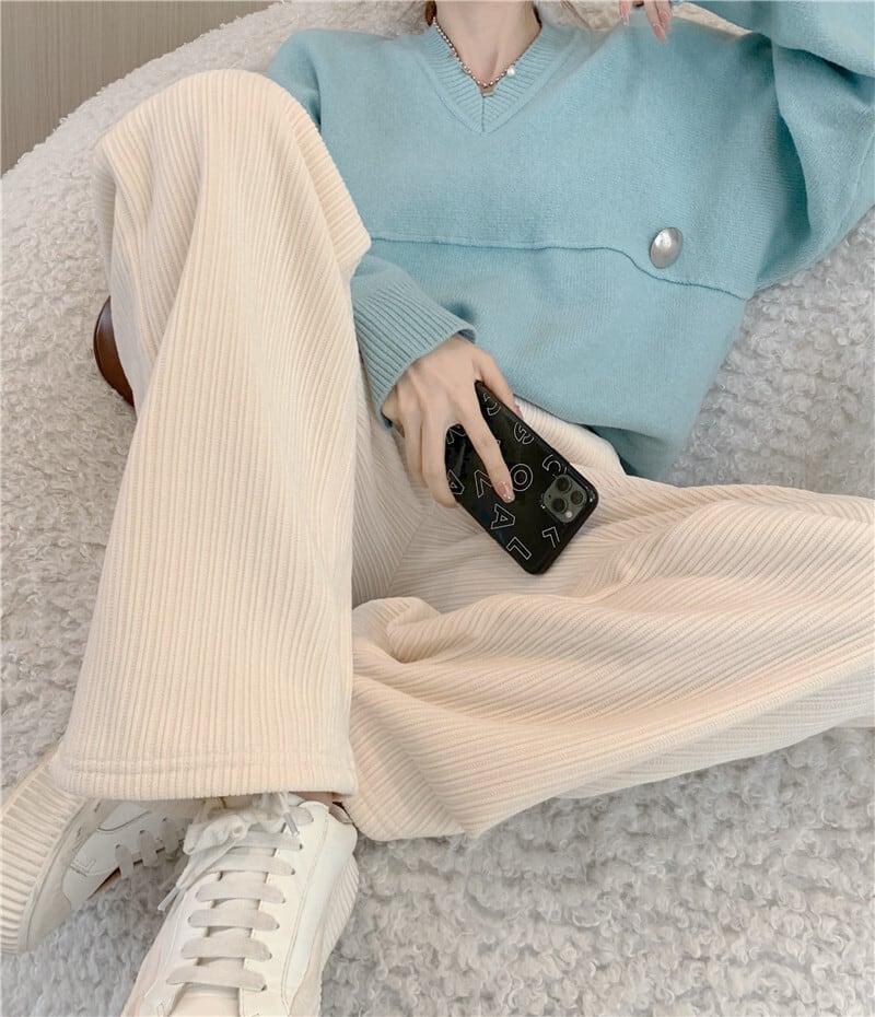 ベルベットハイウェストカジュアルパンツ レディースオータムウィンタールーズ薄手 秋物 冬物 フラワークラフター67313555732