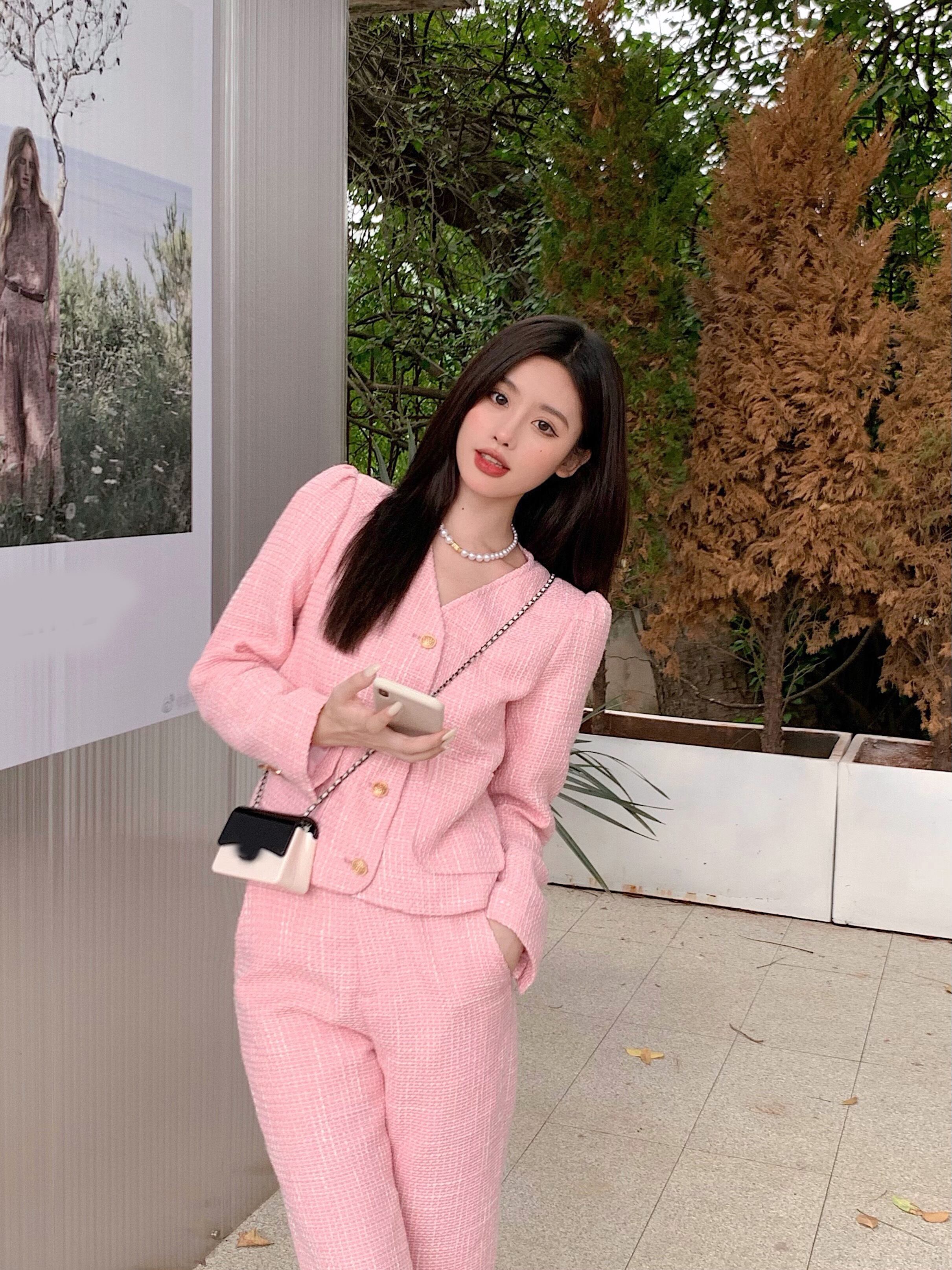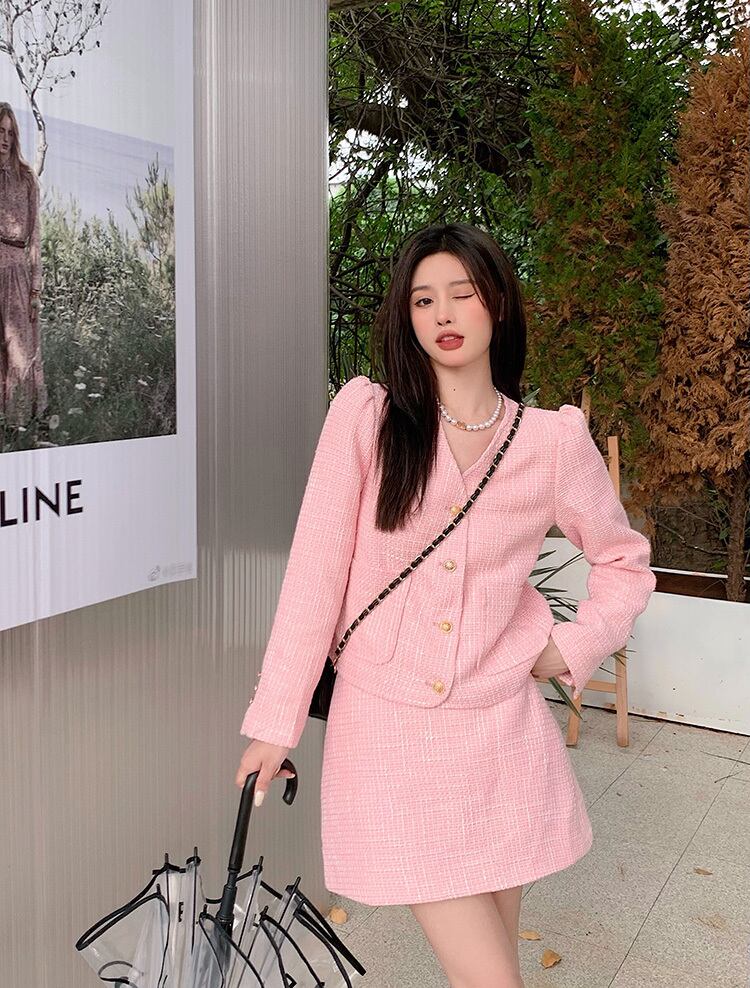 色:シングルピンクジャケット,ピンクパンツワンピース,ピンクのハーフスカートワンピース