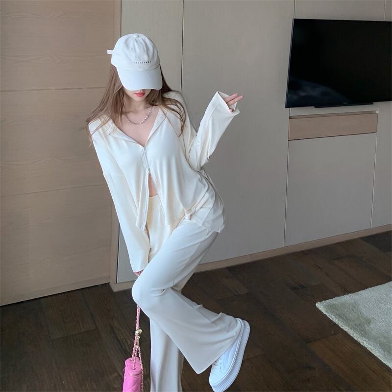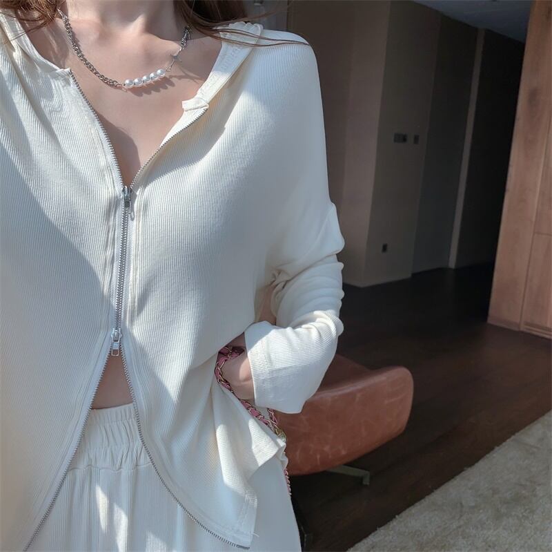 ホワイトフードレディースサマージッパーカーディガンスタイルルーズトップス 夏物 フラワークラフター81488125117