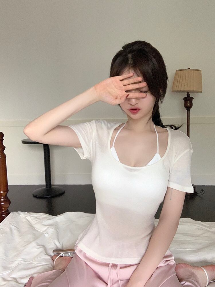 色:ピンクの半袖ワンピース,ホワイト半袖ワンピース,インナーベースワンピース,ホワイトショーツワンピース