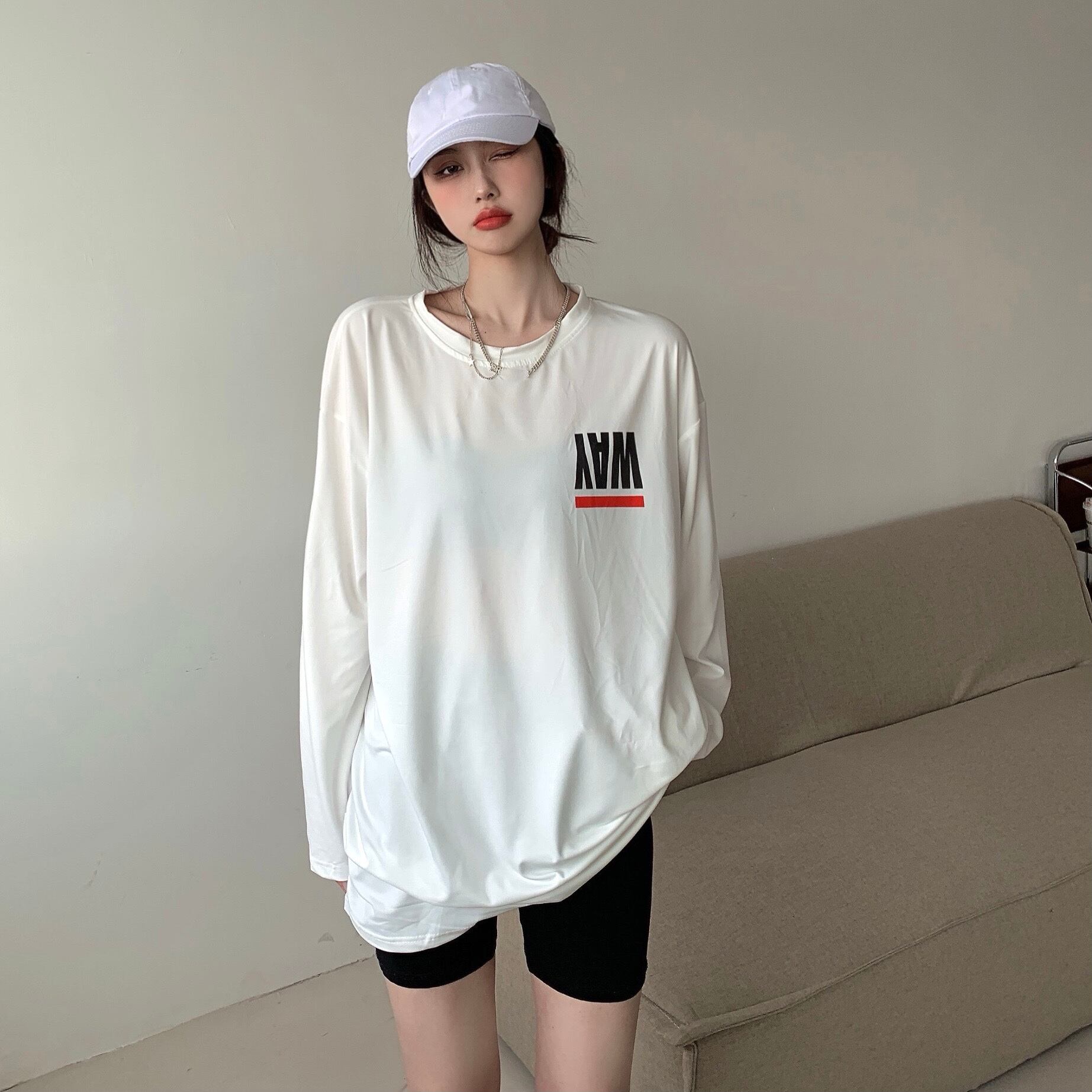 ホワイトTシャツ サマー薄手プリントルーズトップス ロング 夏物 フラワークラフター21677908886