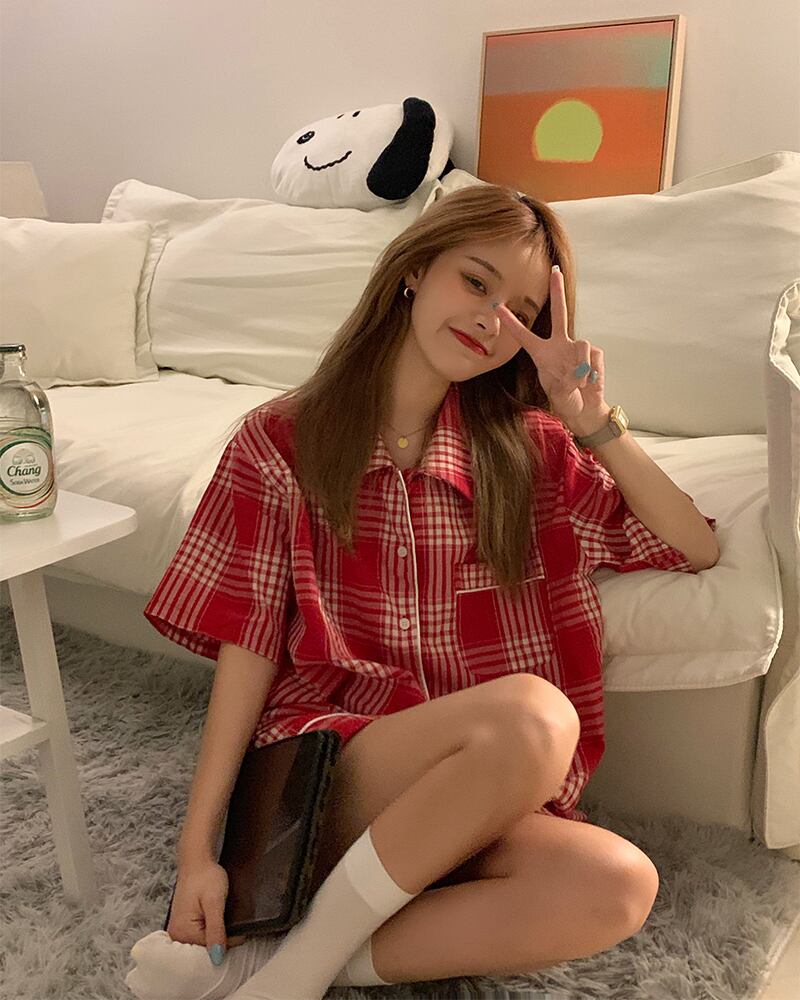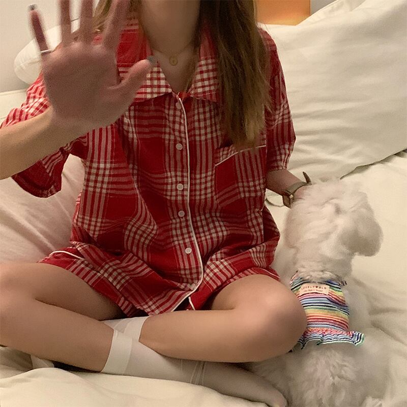 格子柄レディースサマーレッドスタイルスタンダードトップス パンツ レトロ 夏物 フラワークラフター72288000417