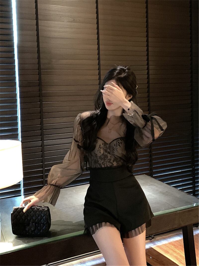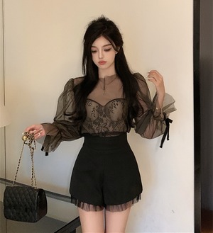 色:ブラックコーヒートップシングルピース,レーススリングシングルピース,ブラックショーツワンピース