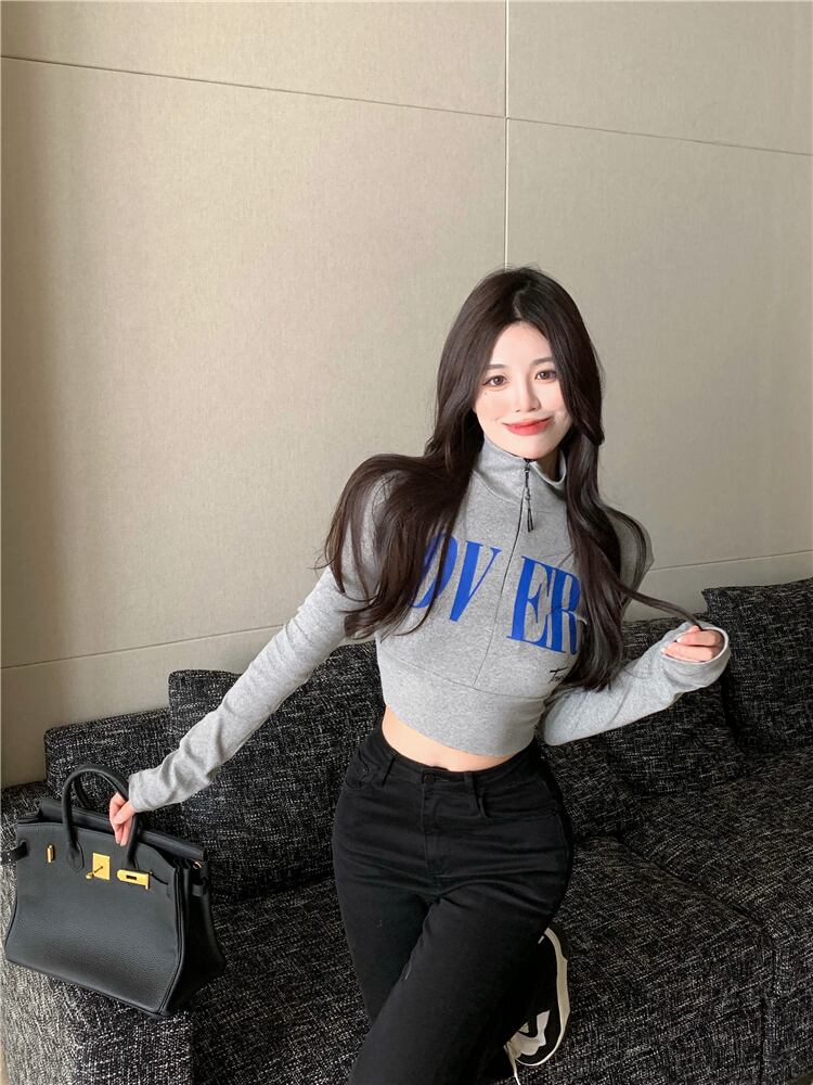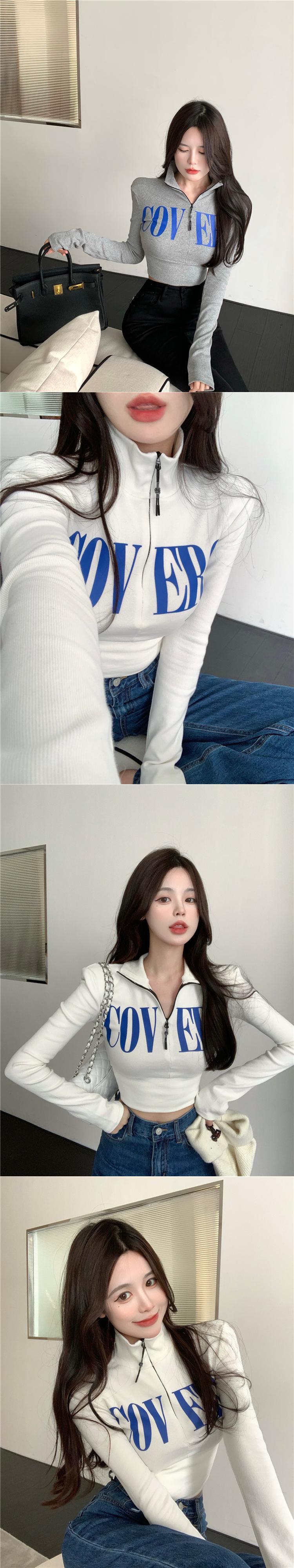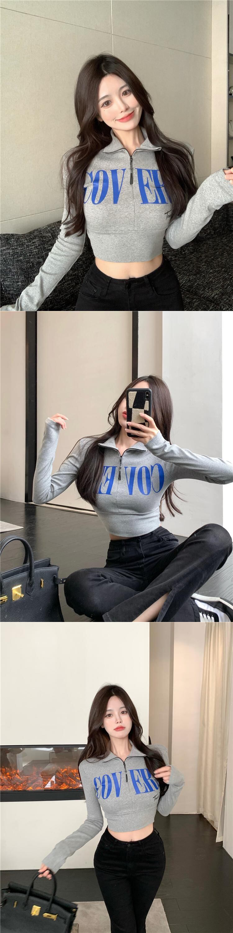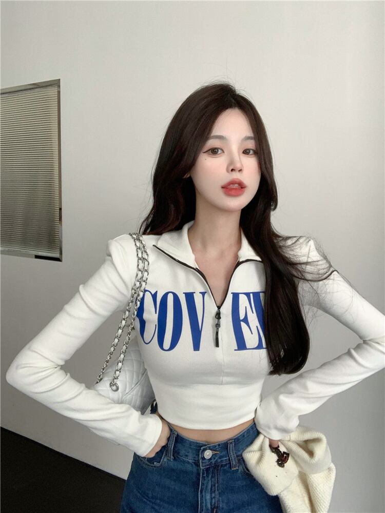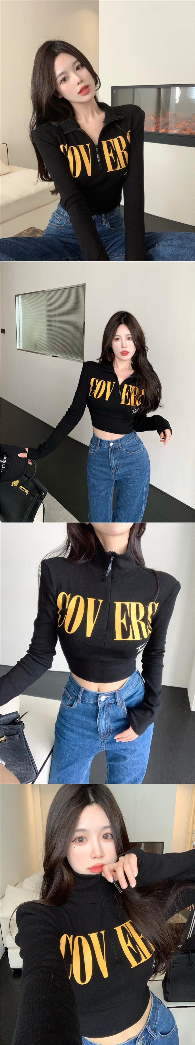 ジッパープリントTシャツ レディースオータムスタイルショートトップス ロング 秋物 フラワークラフター88008222733