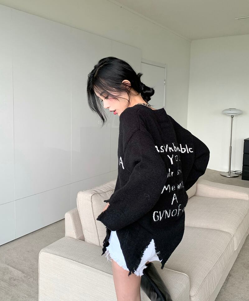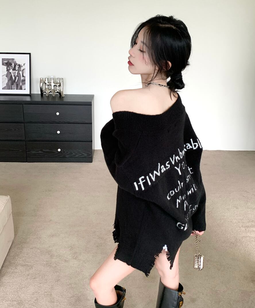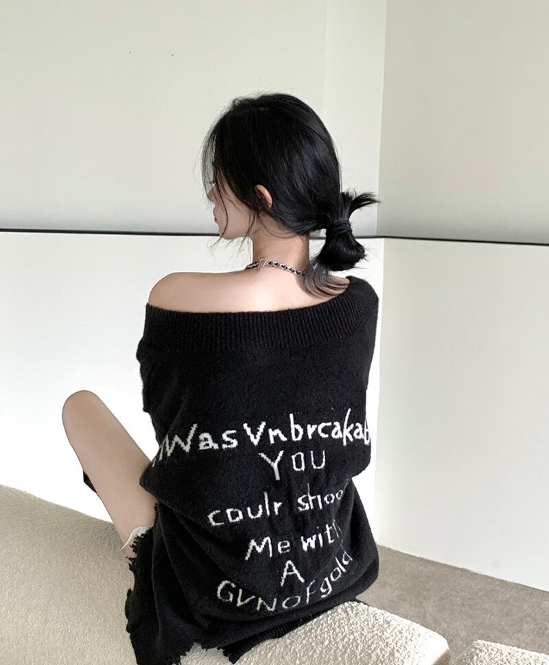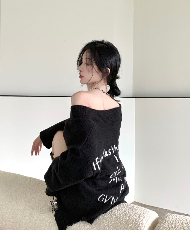 ブラックプルオーバー スプリングオータムスタイルルーズロングニットトップス 春物 秋物 フラワークラフター67754499871