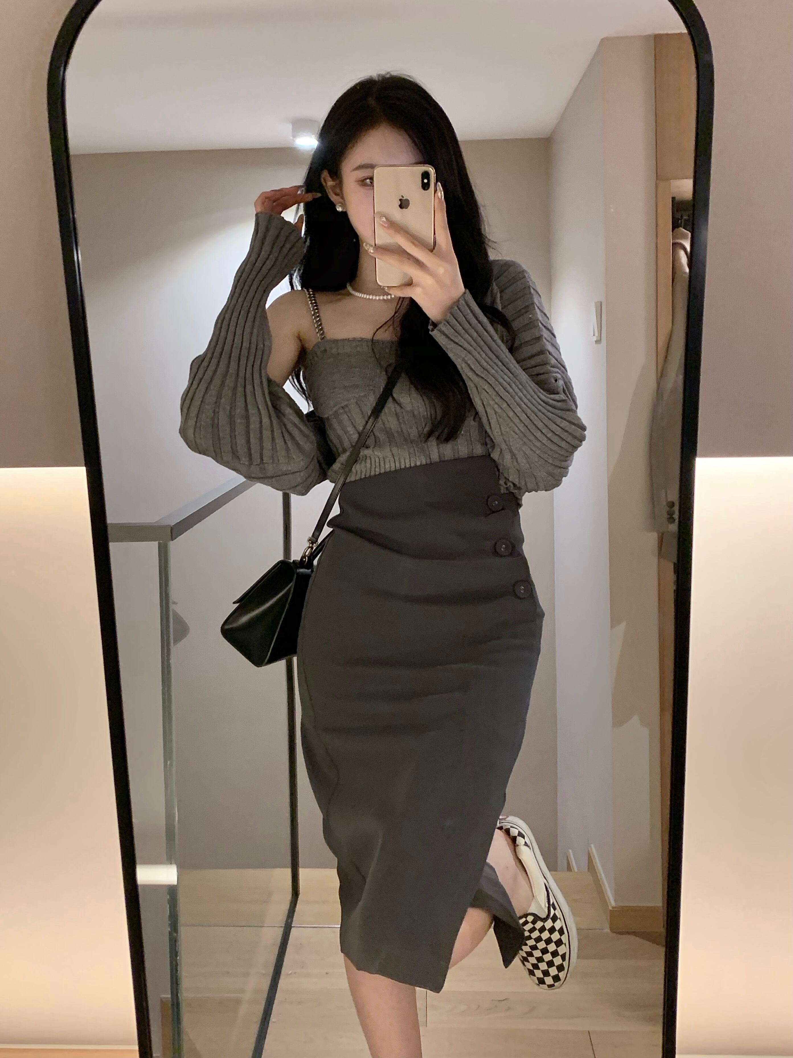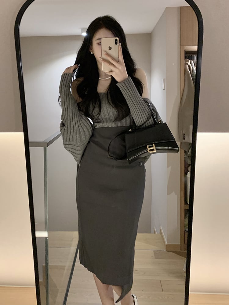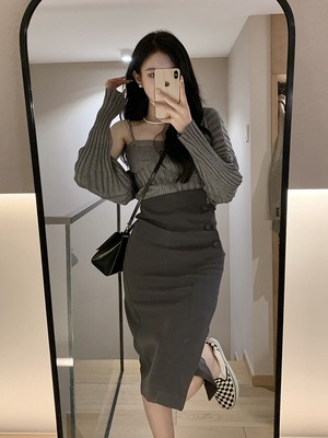 色:ダークグレーのスカート,ツーピースの優しいグレー