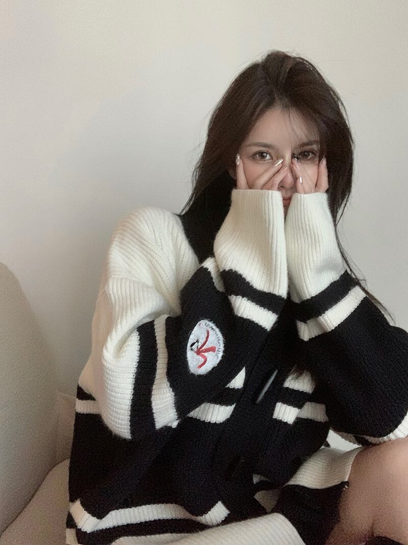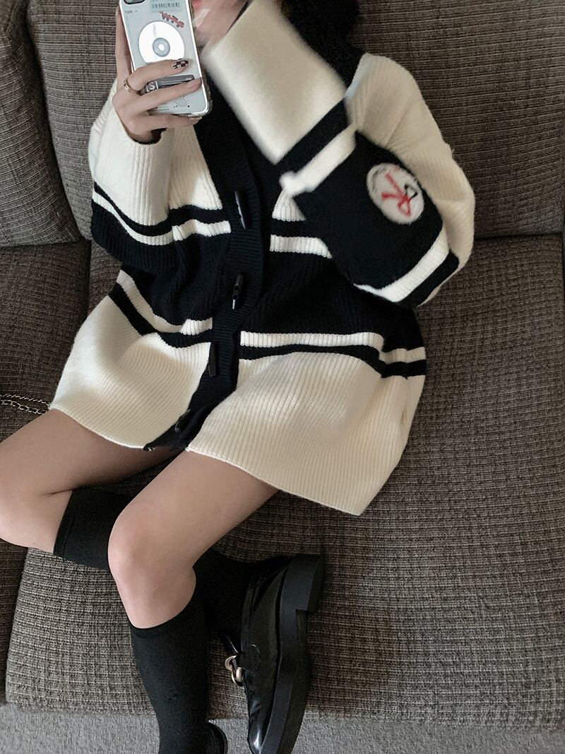 スタイルカラーVネックセーター ジャケット レディースオータムルーズ ロング 秋物 フラワークラフター90325682828