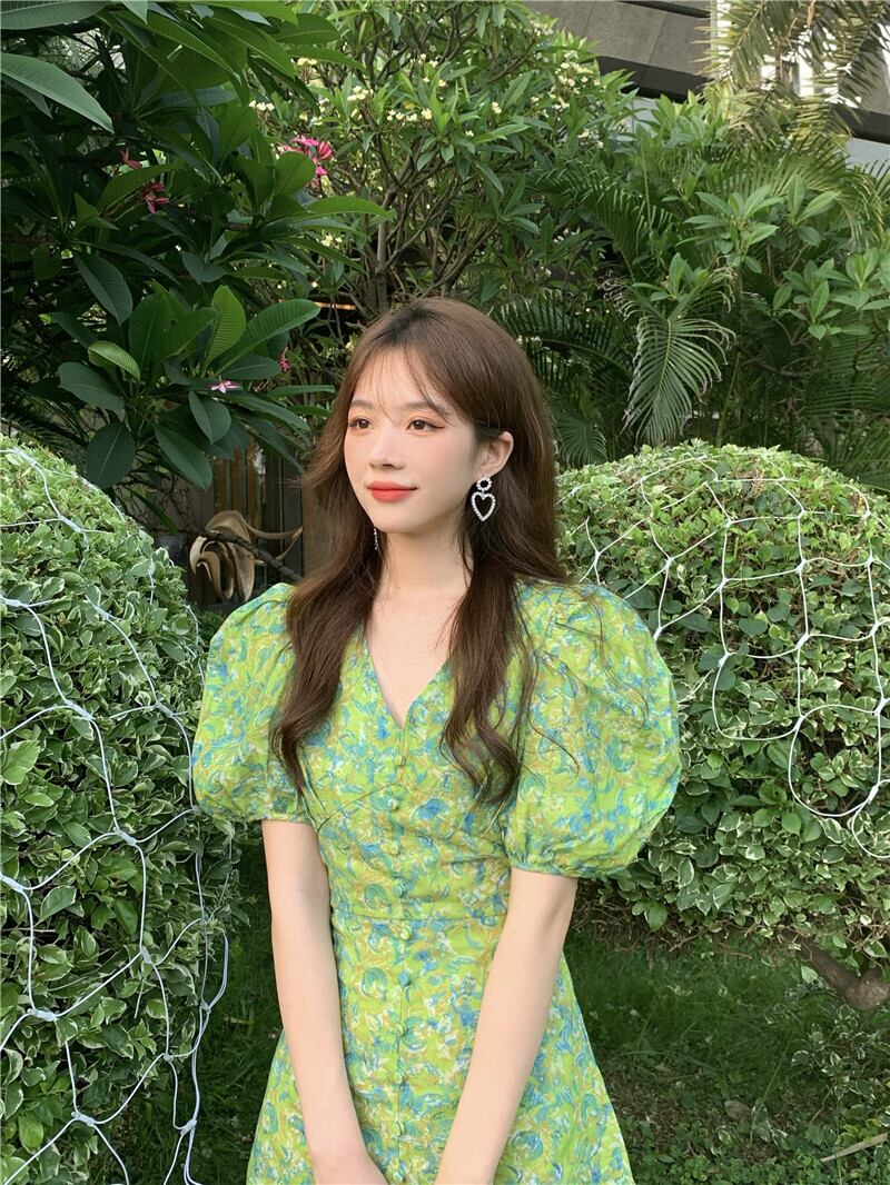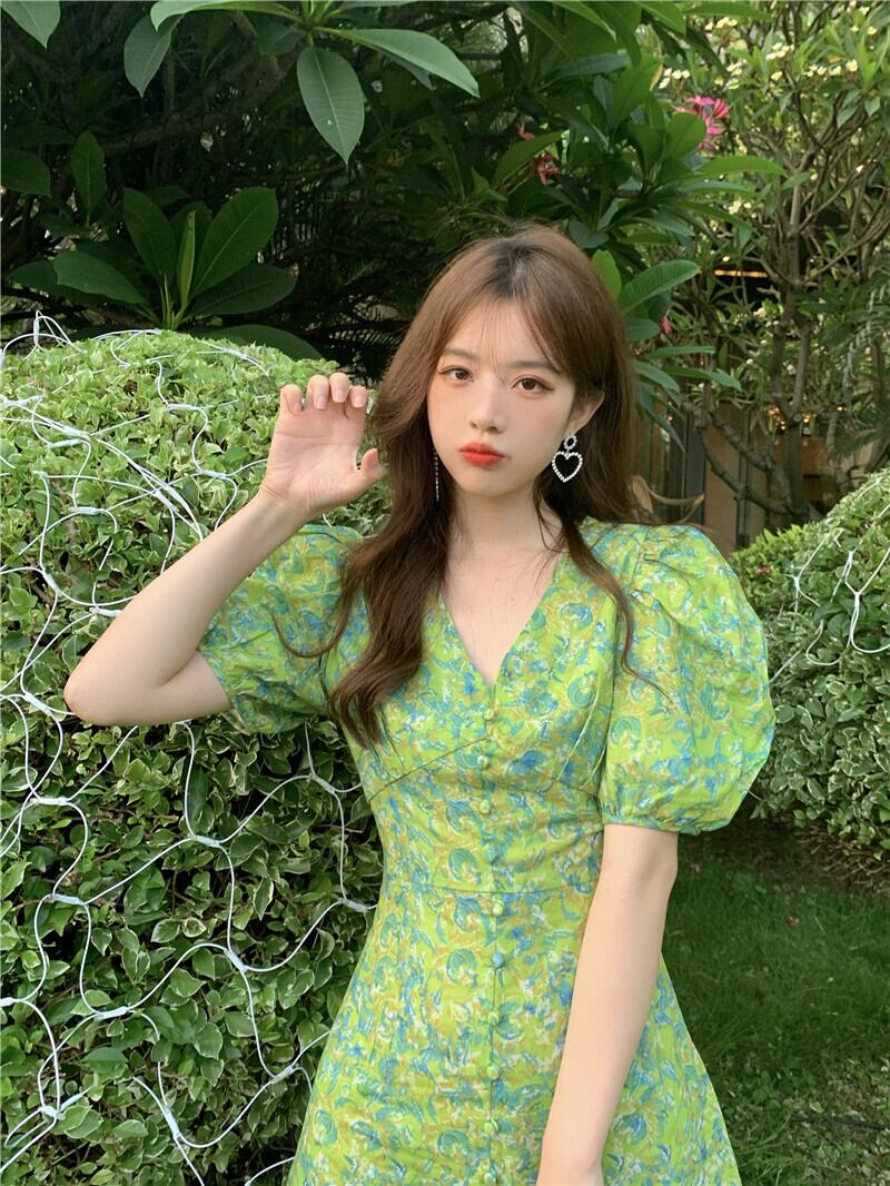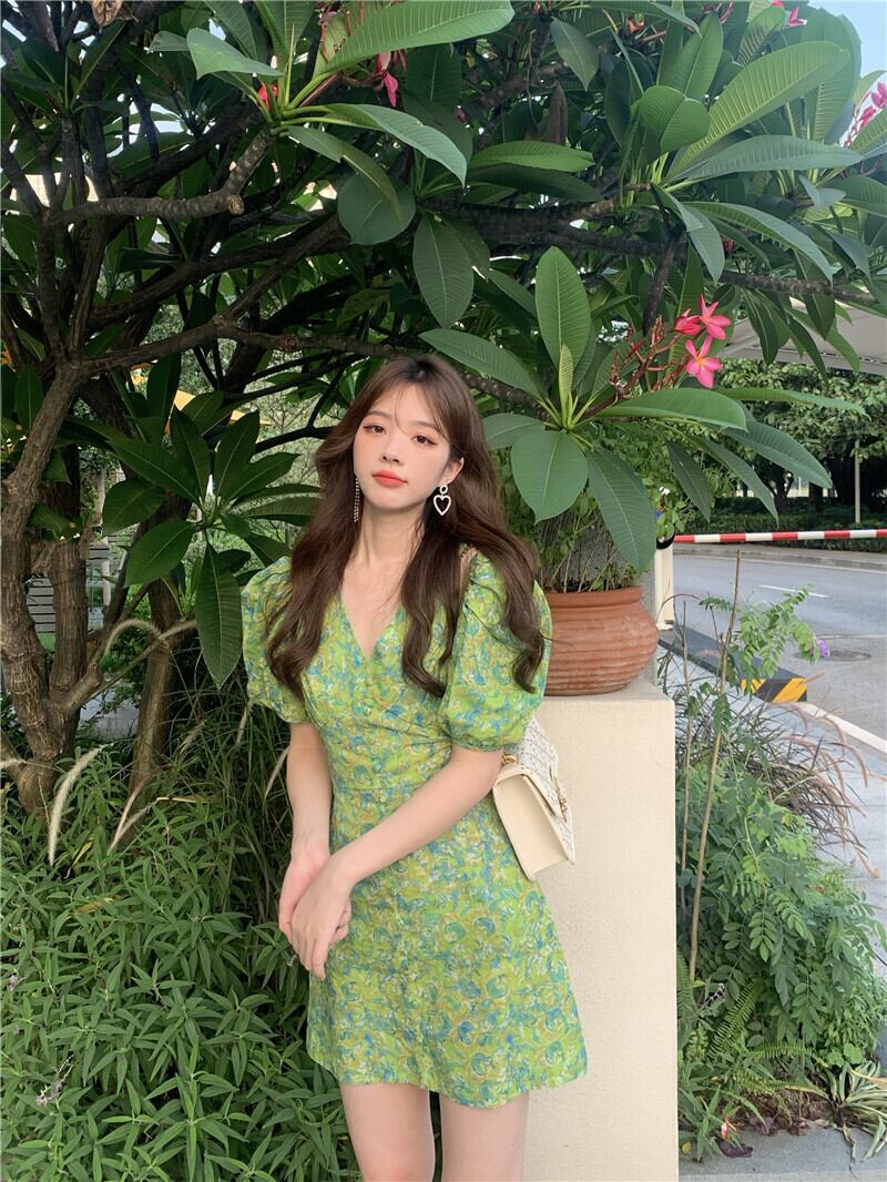 フローラルスリーブドレス レディースサマーウェストスリムショートスカート 大人ガーリー スウィート キュート カジュアル 夏物 花柄 フラワークラフター2322172370