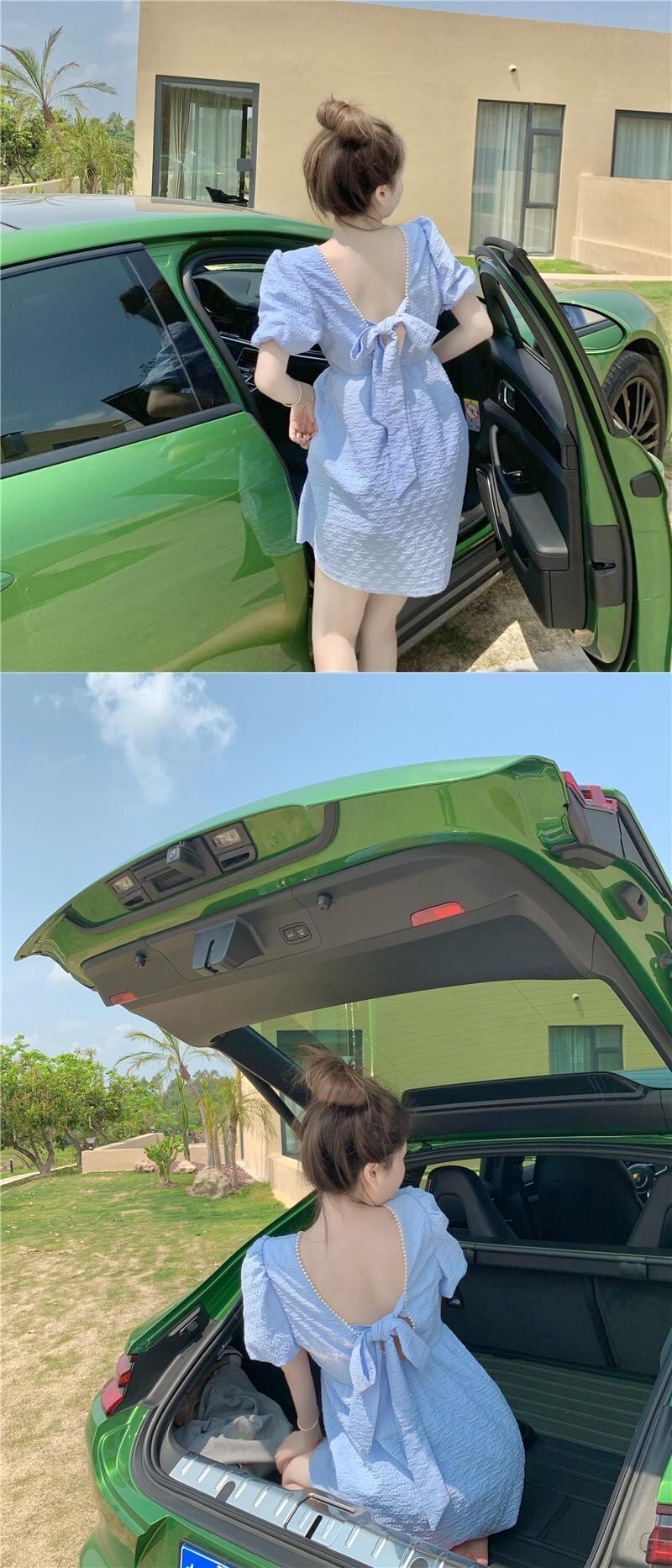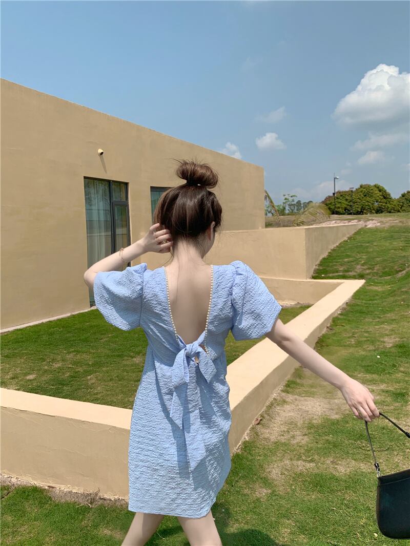 スリーブドレス サマーパールバックスカート ウェストAライン 夏物 真珠 フラワークラフター15346840872