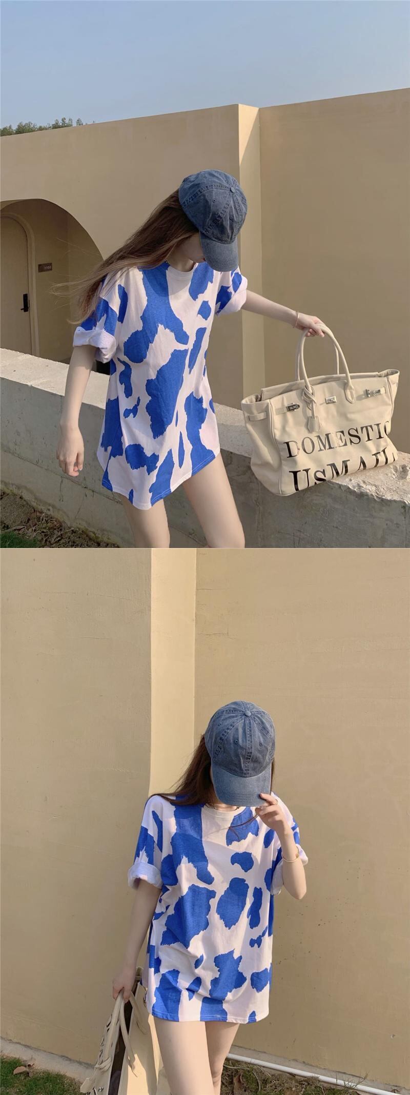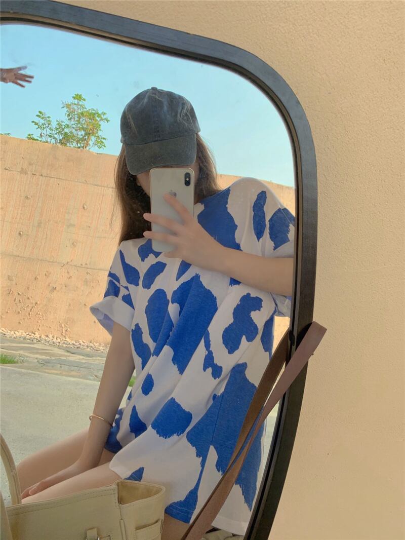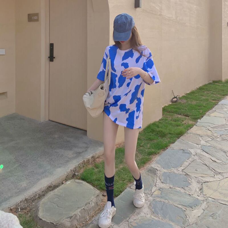 ルーズTシャツ シャツ レディースサマーグリーンパターンプリントトップス 夏物 フラワークラフター7708945550