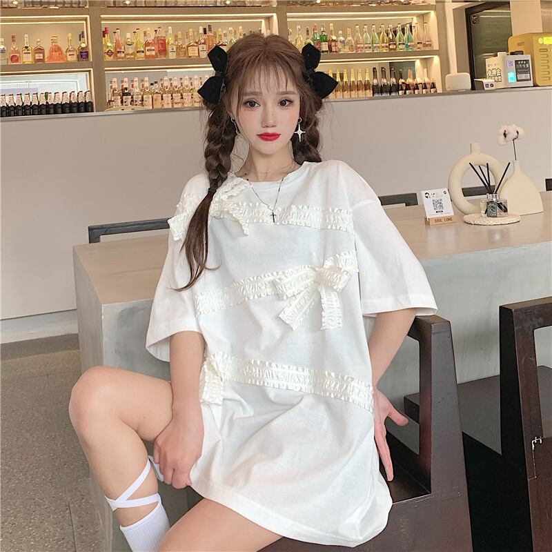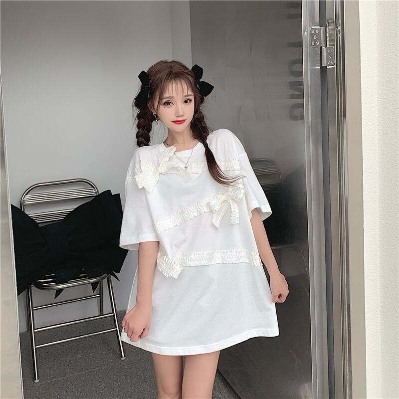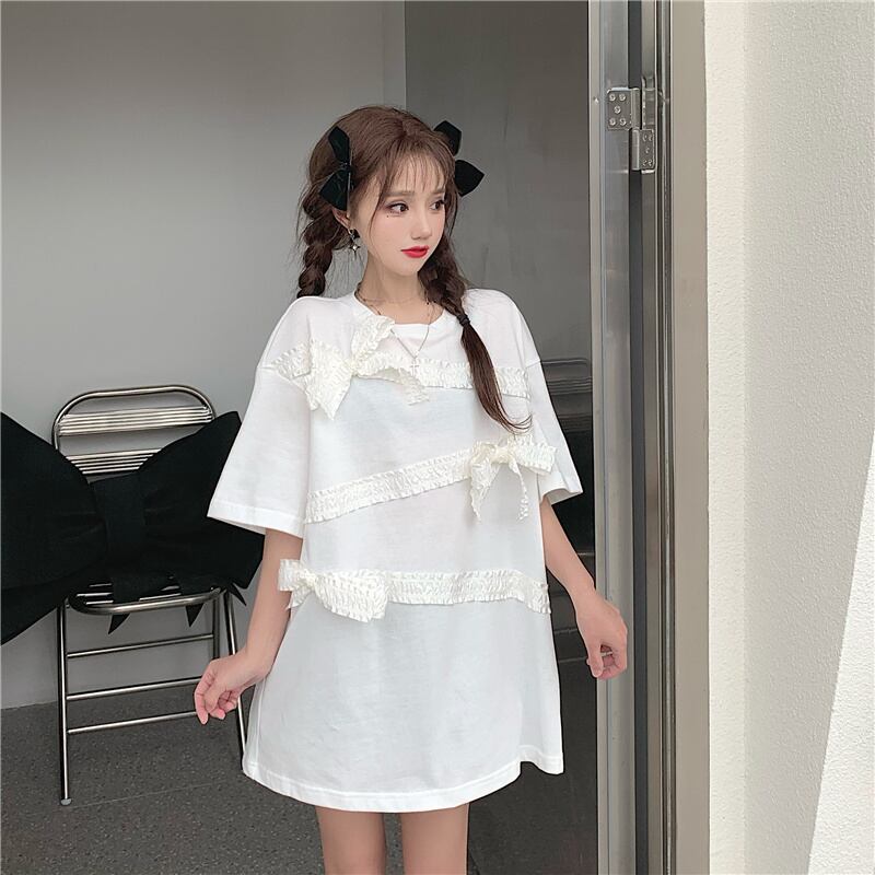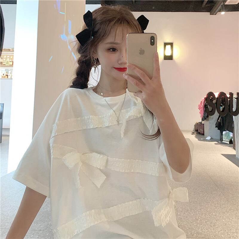 ホワイトTシャツ シャツ サマースタイルリボンルーズトップス 夏物 ステッチ フラワークラフター20428209314