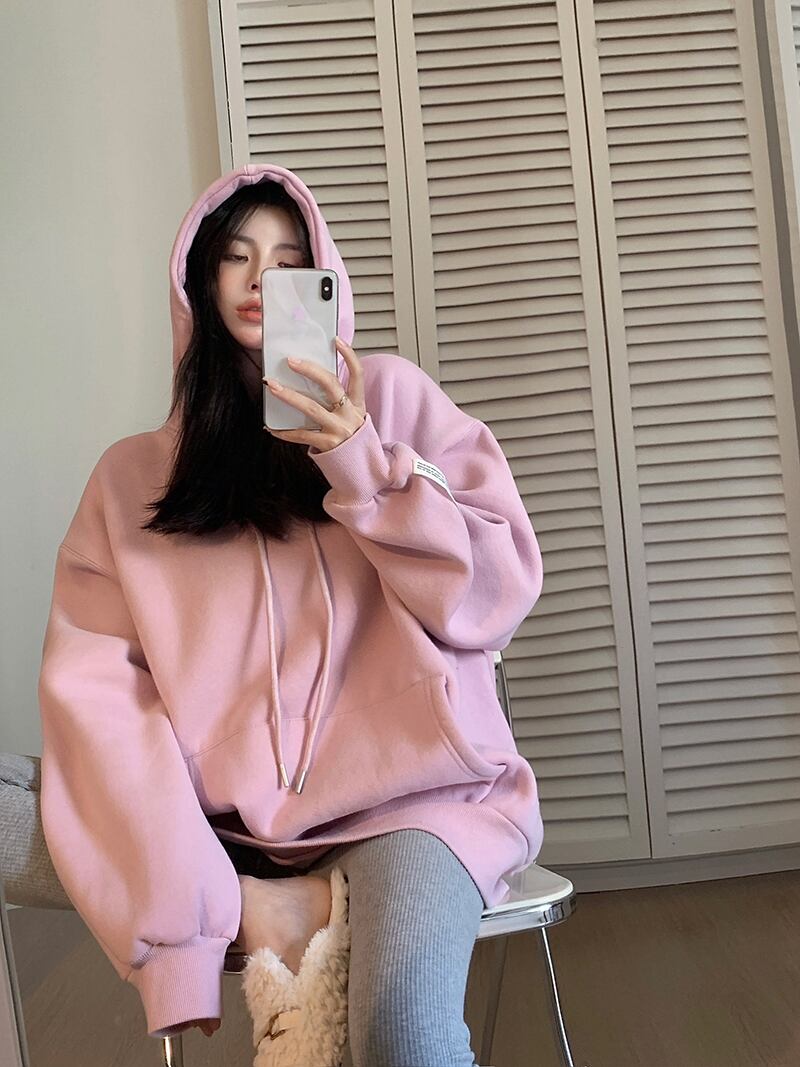 ベルベットオータムウィンタールーズポケットフードトップス ピンク コットン 秋物 冬物 フラワークラフター50879729452