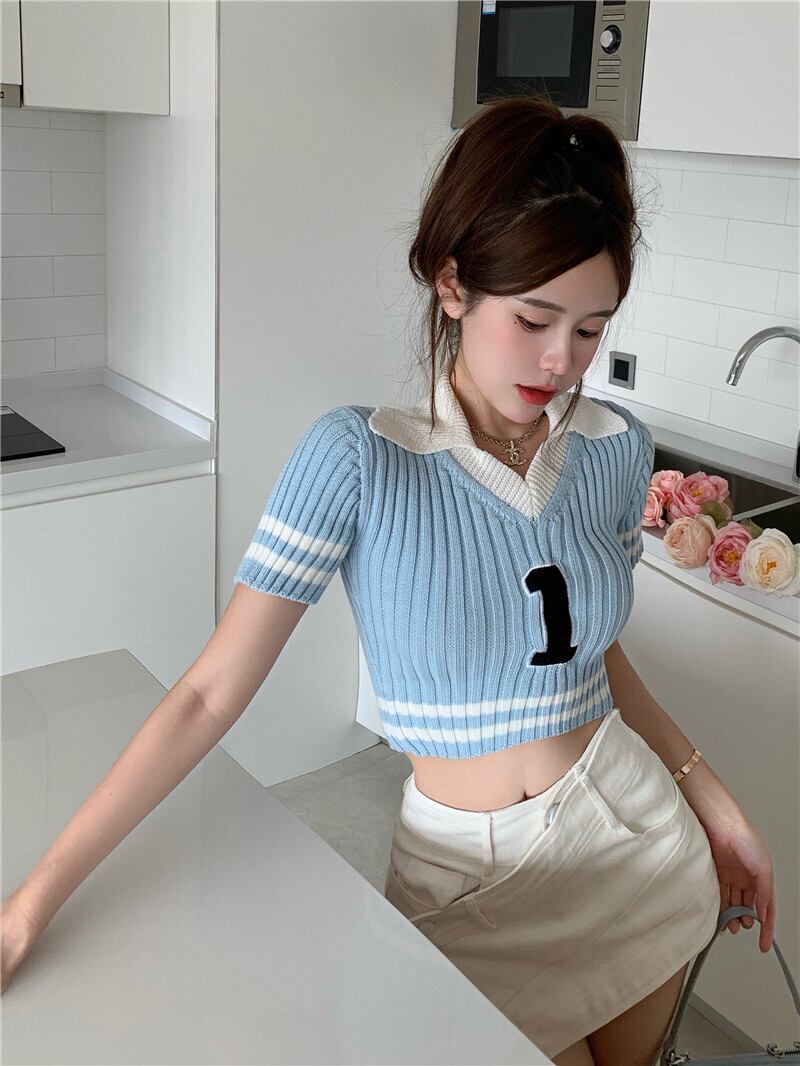 スタイルニットTシャツ レディースサマーカラースリムクロップトップ トップス 夏物 フラワークラフター95627373251