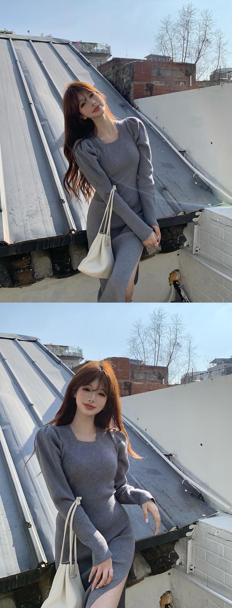 スタンダードニットドレス オータムウェストスカート レトロ 秋物 フラワークラフター31745092475