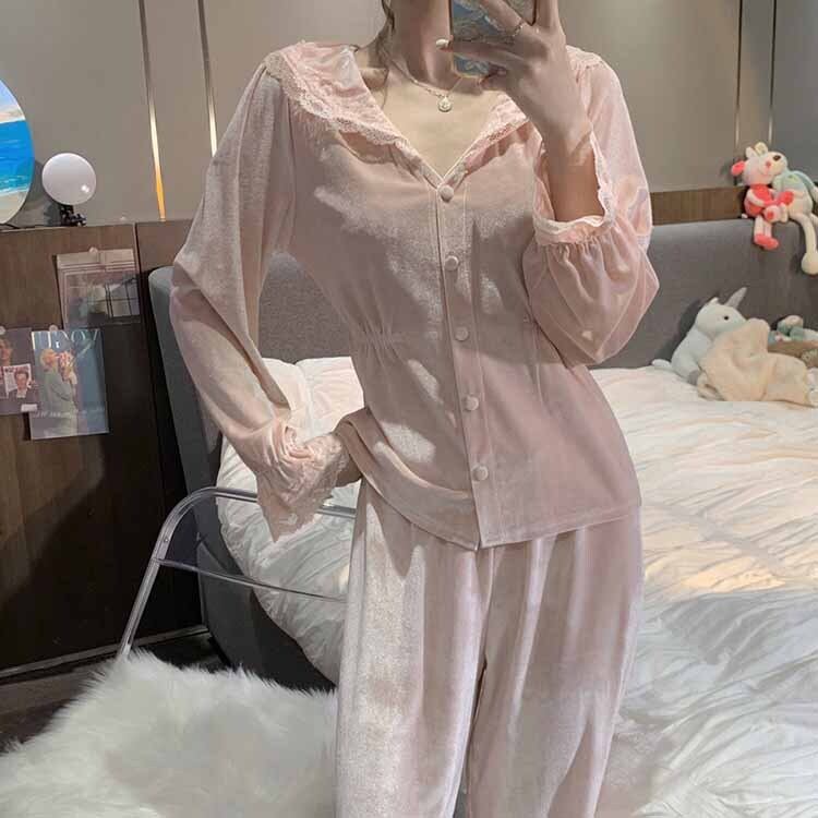 ゴールドベルベットレディースオータムスタイルレース ロング 大人ガーリー スウィート キュート カジュアル 秋物 フラワークラフター22891853976