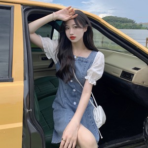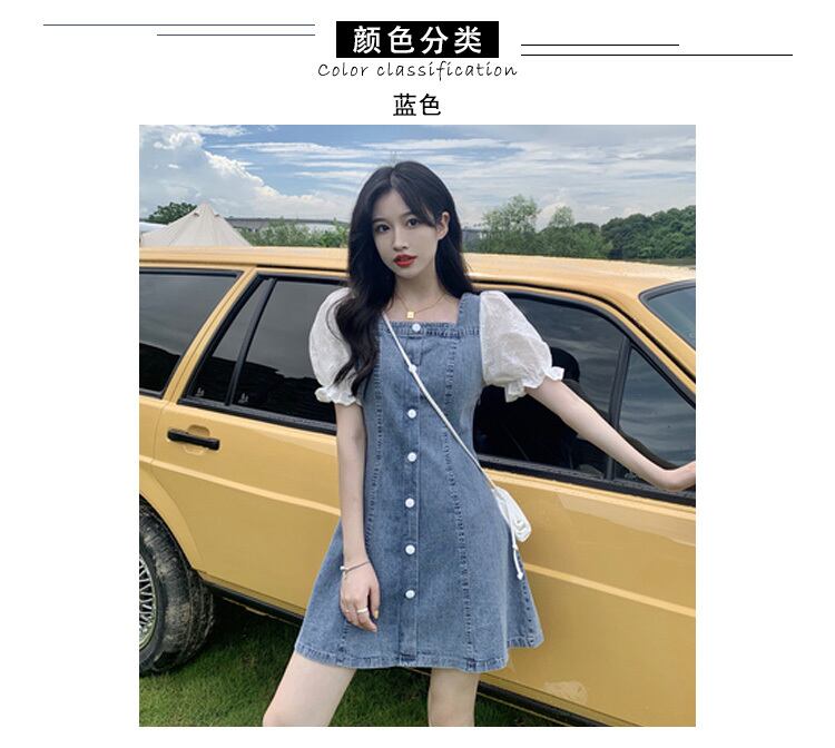 スリーブドレス レディースサマースタンダードカラーウェスト薄手スカート レトロ 夏物 スクウェア ステッチ フラワークラフター83585390590