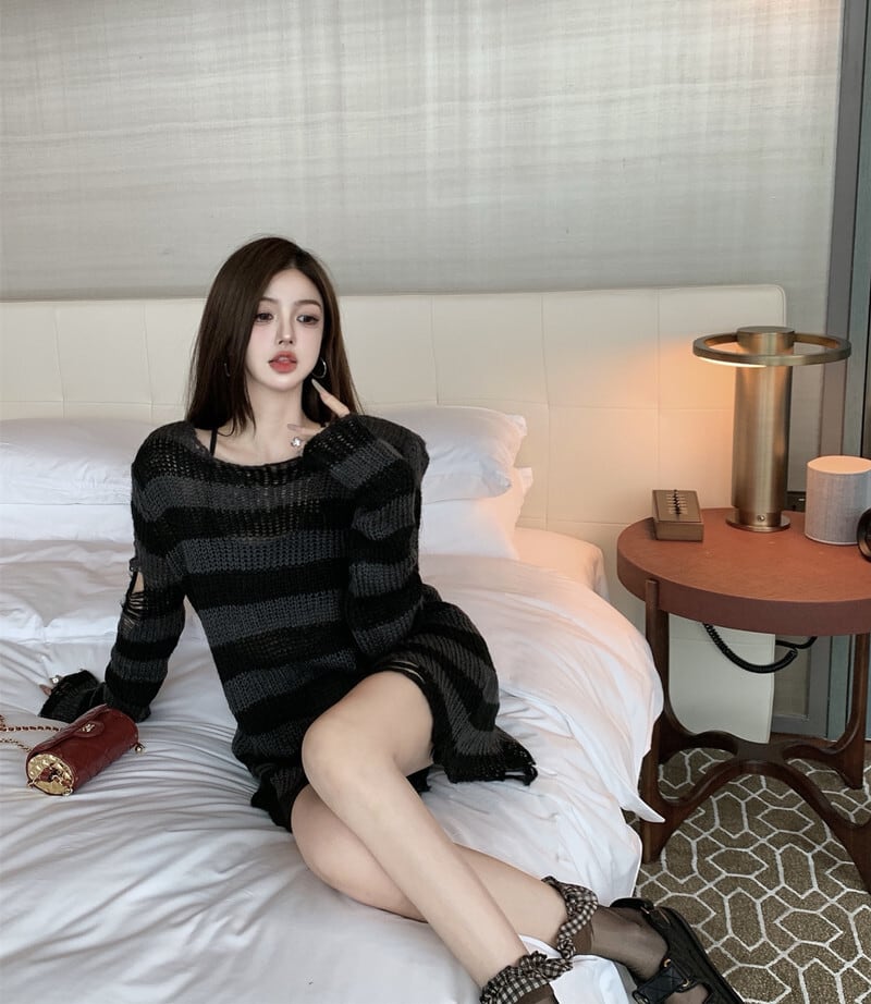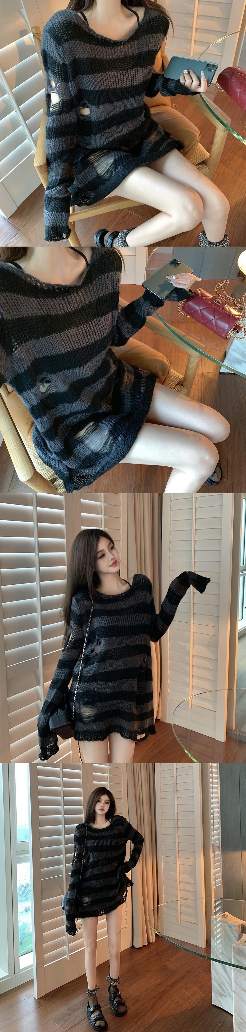 ストライプセーター レディーススプリングオータムルーズトップス ロング 春物 秋物 フラワークラフター98787204984
