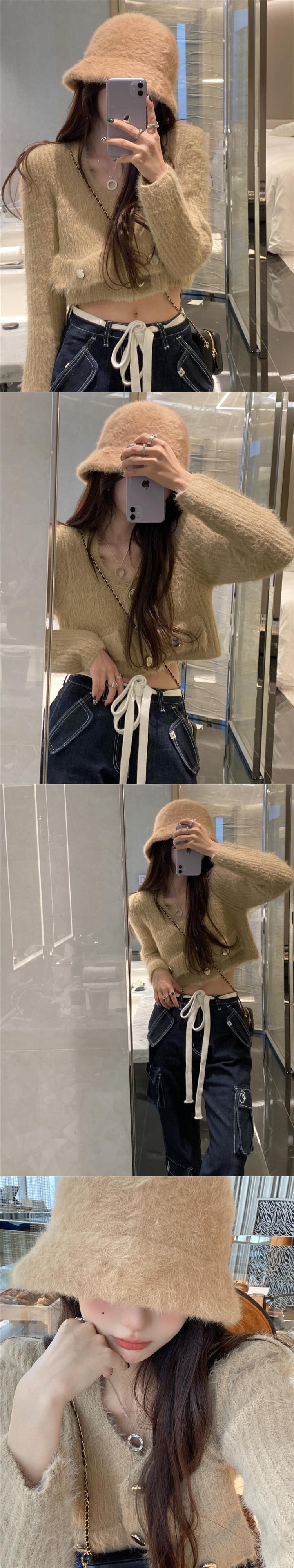 フェイクファーセーター ジャケット レディースオータムVネックニットカーディガンショートトップス 秋物 フラワークラフター93757910629