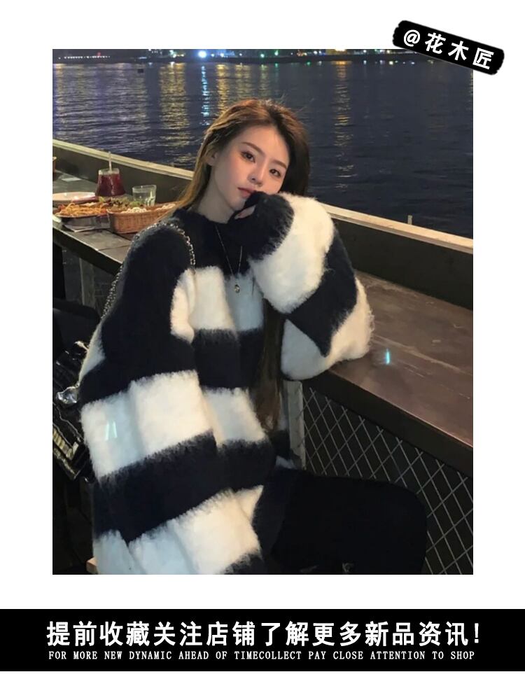 ストライププルオーバー セーター レディースルーズオータムウィンター ロング 秋物 冬物 フラワークラフター81179673028