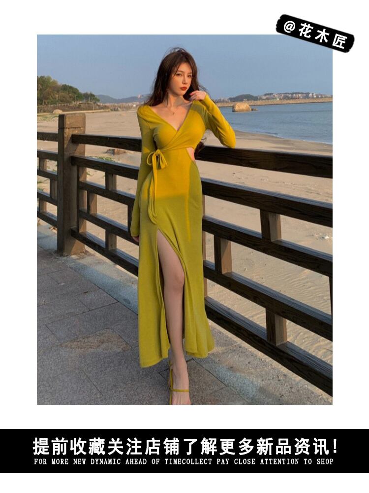 ドレス スプリングオータムVネックスカート ウェストAライン ロング 春物 秋物 フラワークラフター55002091987