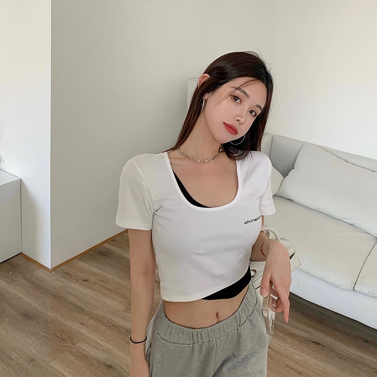 Tシャツ シャツ スプリングサマークロップドショートスリム 春物 夏物 フラワークラフター83289342004
