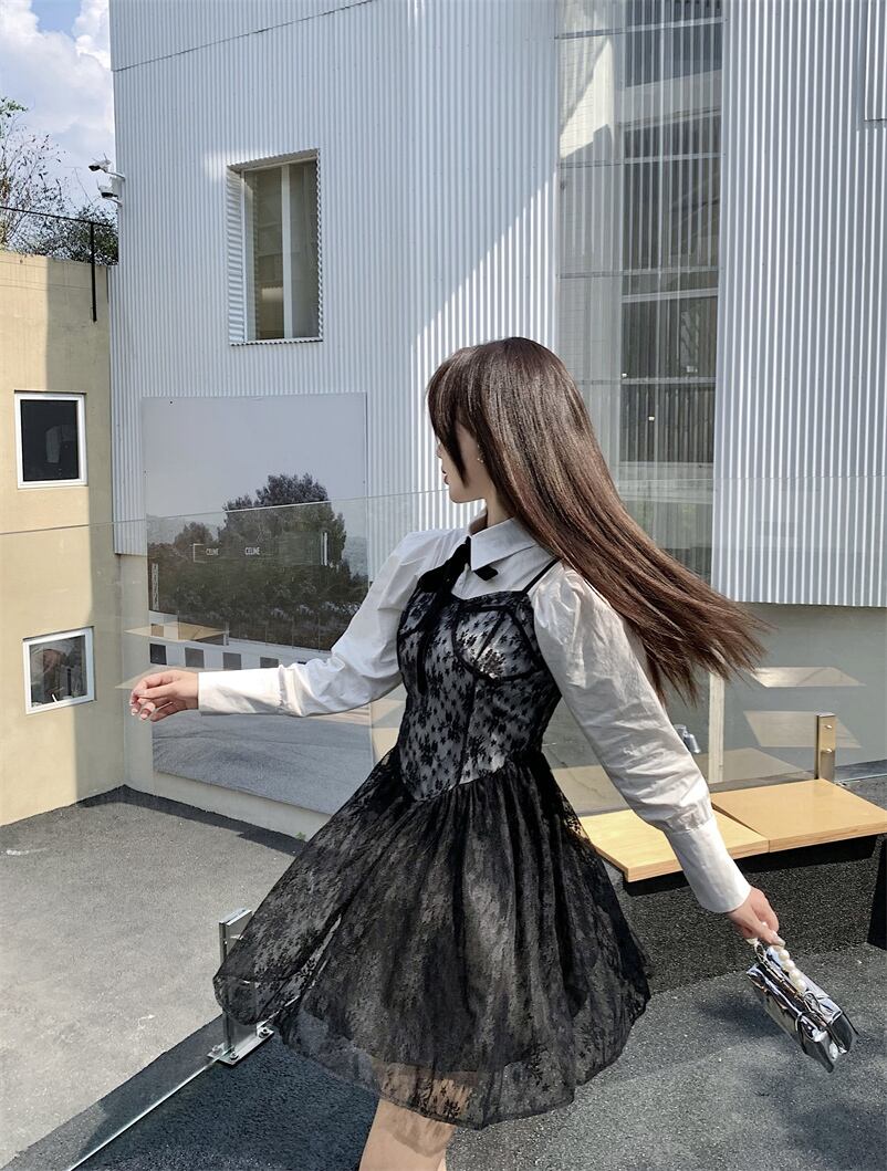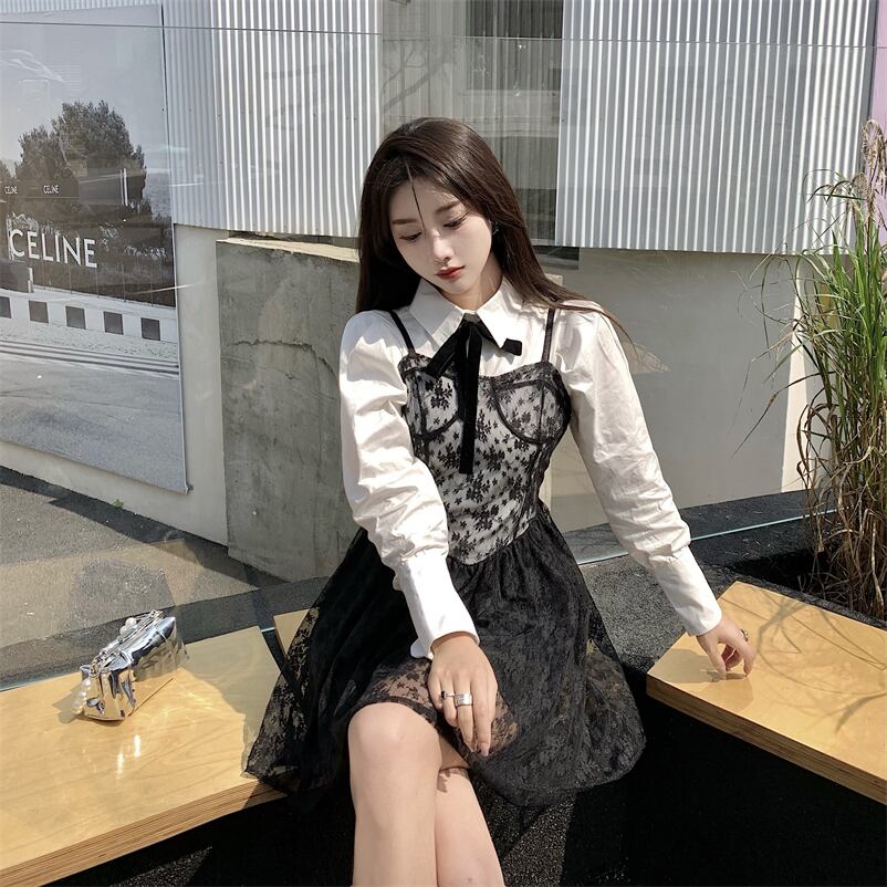 レースドレス スプリングオータムウェストスリムショートスカート 春物 秋物 フラワークラフター33095769614